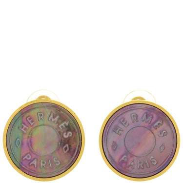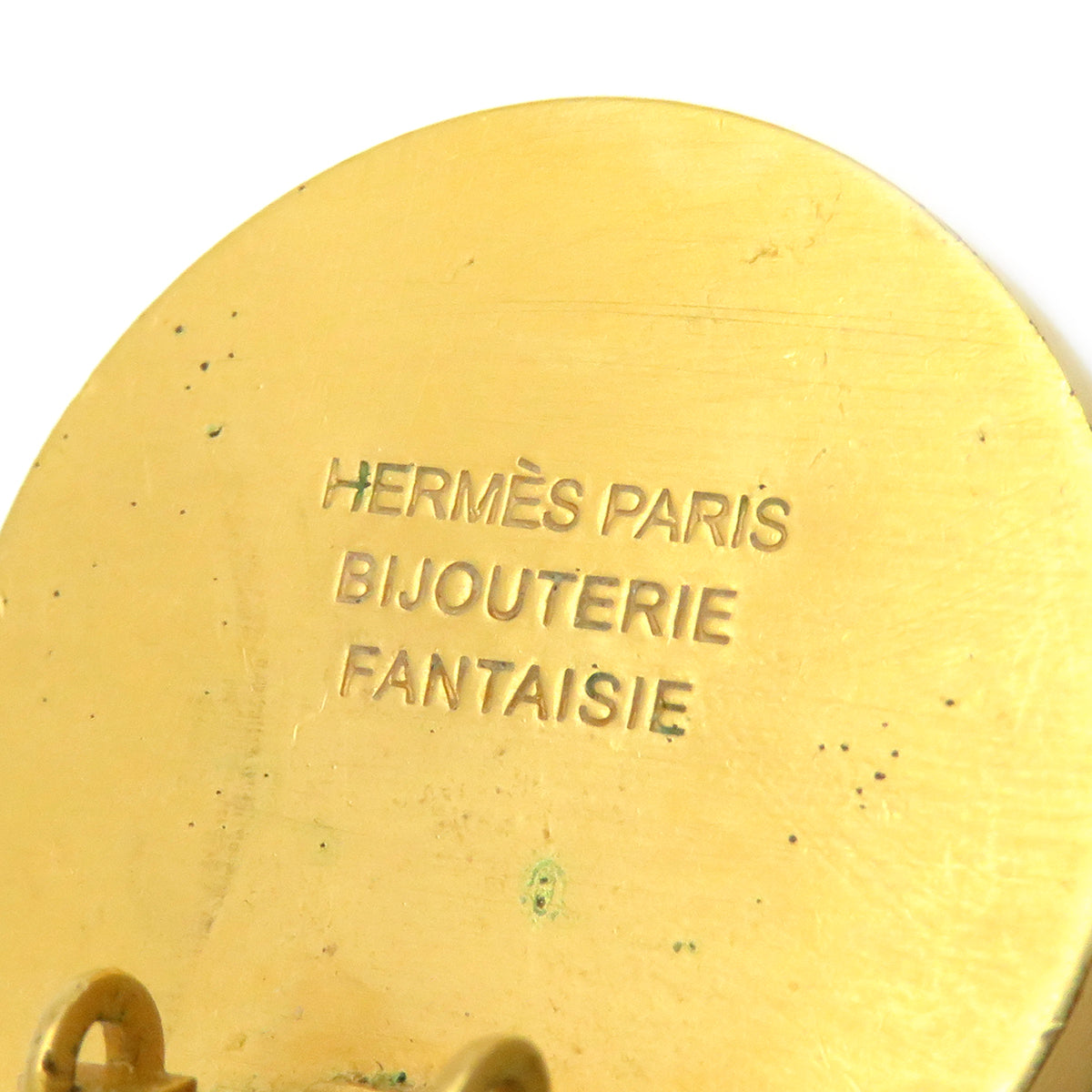 エルメス HERMES セリエ ブラックXゴールド GP ブラックシェル イヤリング ラウンド サークル ロゴ