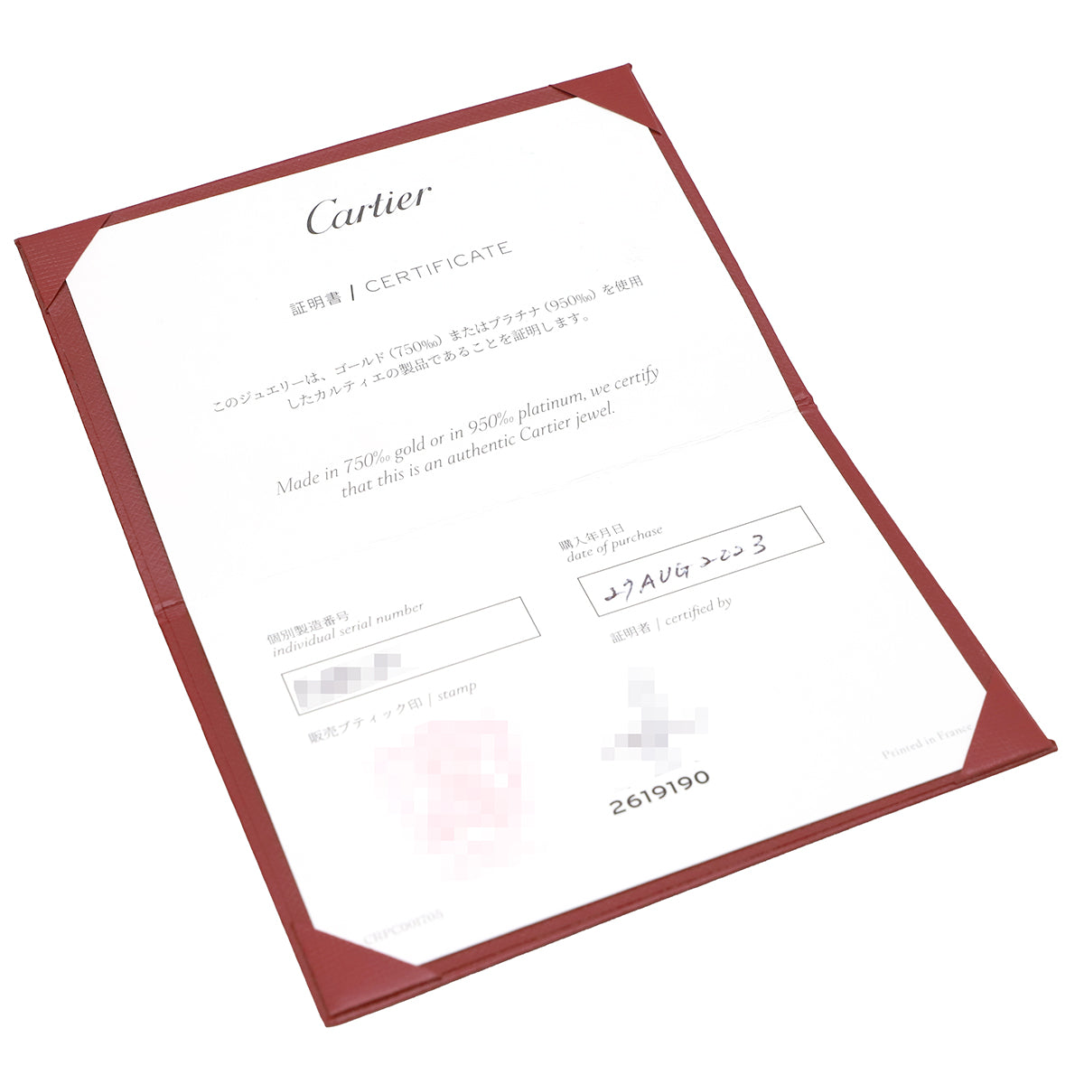 管理コード: 240500503670Cartier