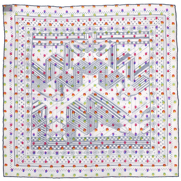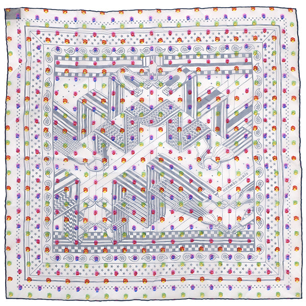 エルメス HERMES カレ70 CARRE オレンジ×ブラック×マルチカラー シルク アセテート スカーフ 【SANGLES EN ZIGZAG BANDANA/ジグザグのサングル】