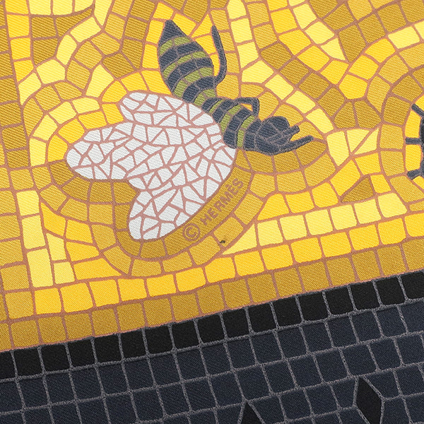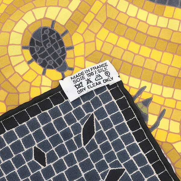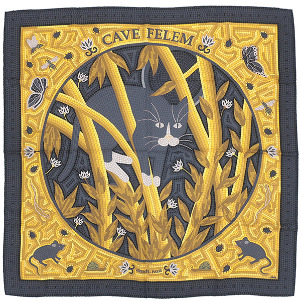エルメス HERMES カレ90 CARRE ブラック×ジョーヌ シルク スカーフ 【CAVE FELEM/猫に注意】