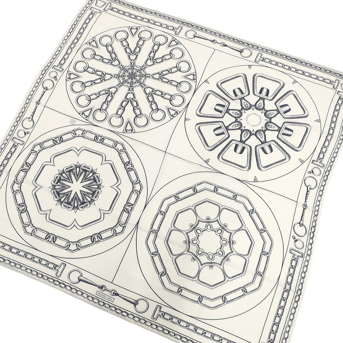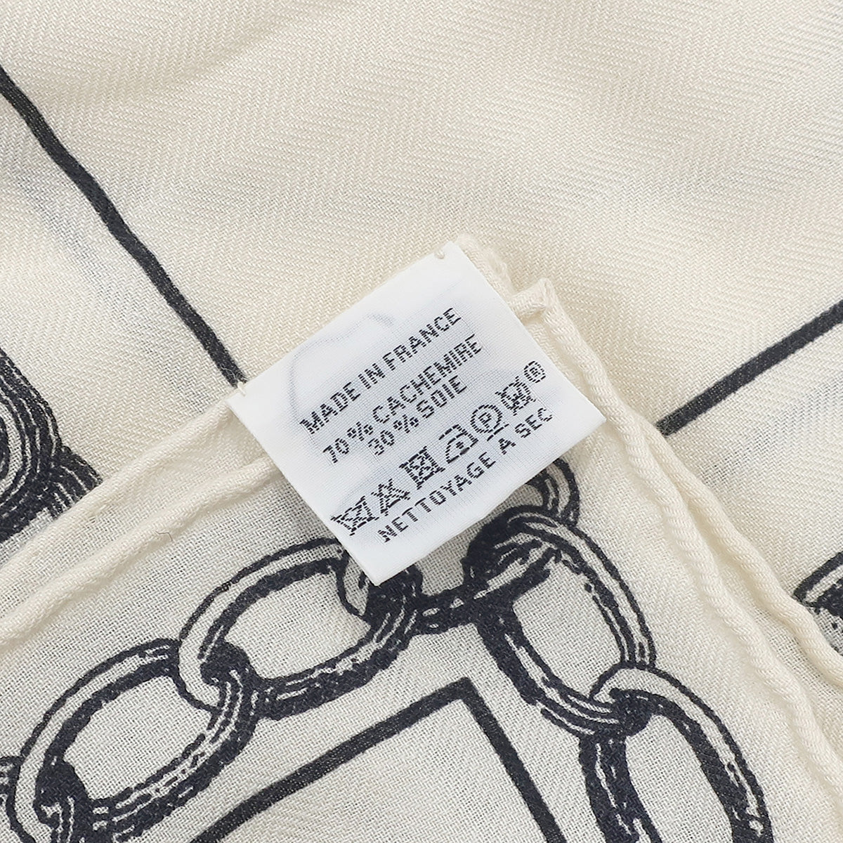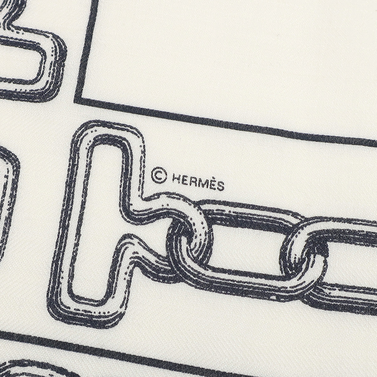 エルメス HERMES ショール カレ140 CARRE ホワイト×ブラック カシミヤ シルク ストール 【L'EFFET KALEIDOSCOPE/カレイドスコープ エフェクト】