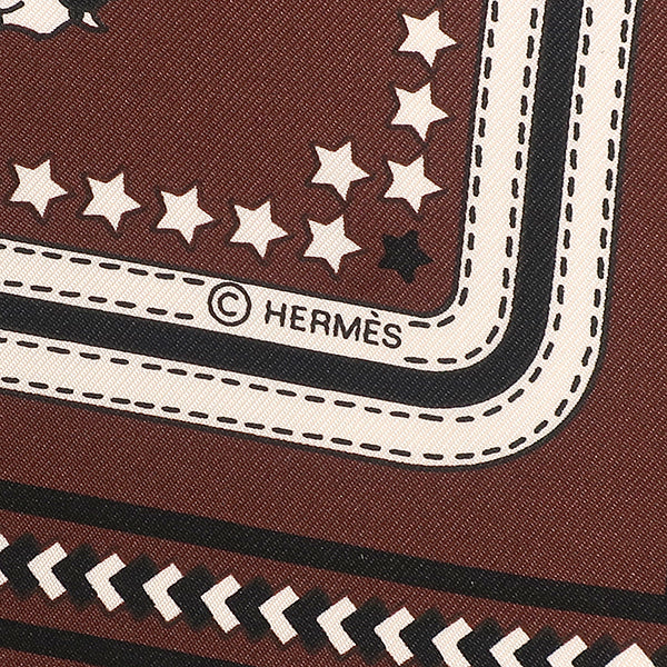 エルメス HERMES カレ55 CARRE ブラウン×ホワイト×ブラック シルク スカーフ 【ECURIES/厩舎】