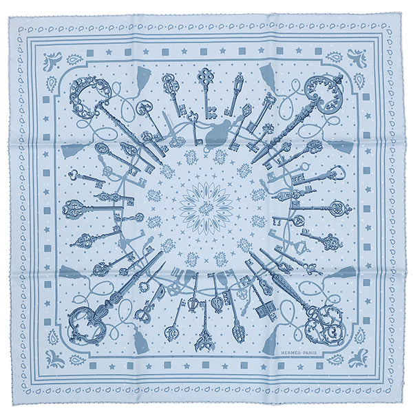 エルメス HERMES カレ55 CARRE ブルーシエル×ブルージーン シルク スカーフ 【LES CLES BANDANA/レ クレ バンダナ】