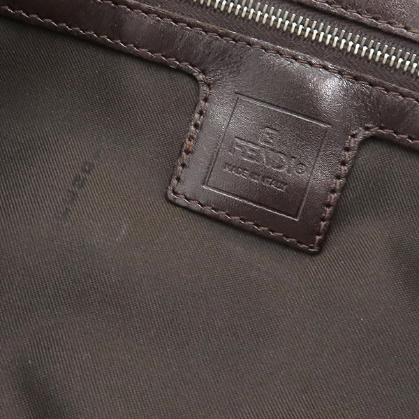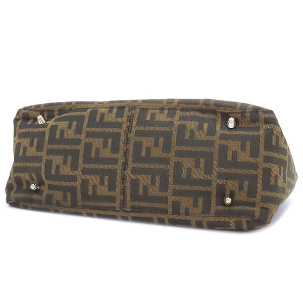 フェンディ FENDI ズッカ ブラウン×ダークブラウン キャンバス レザー ハンドバッグ シルバー金具 茶 FF