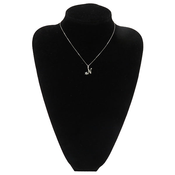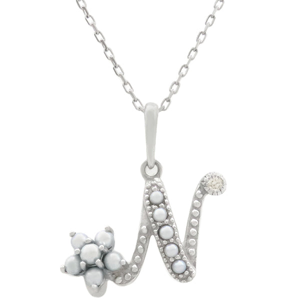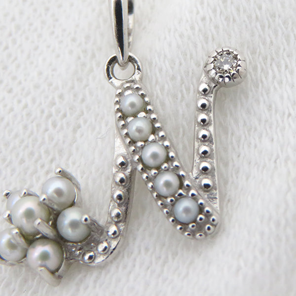ノンブランド NON BRAND パール ペンダント ホワイトゴールド K18WG パール ダイヤモンド ネックレス Nモチーフ 1Pダイヤ