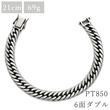 喜平 KIHEI PT850 21.5cm 69.8g 6面 ダブル W プラチナシルバー Pt850 ブレスレット 造幣局検定マーク ※ショッピングローン対応していません