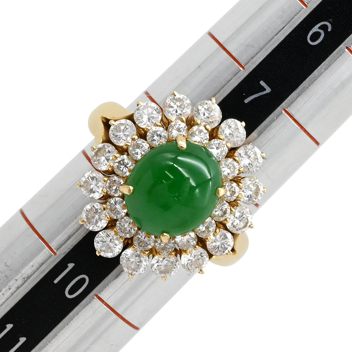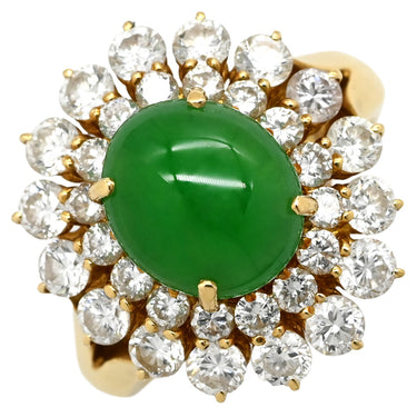 ポンテヴェキオ Ponte Vecchio 翡翠 ダイヤモンド リング イエローゴールド×ジェダイトグリーン K18YG 翡翠 ダイヤモンド リング 指輪 ジェダイト 750 YG 9号
