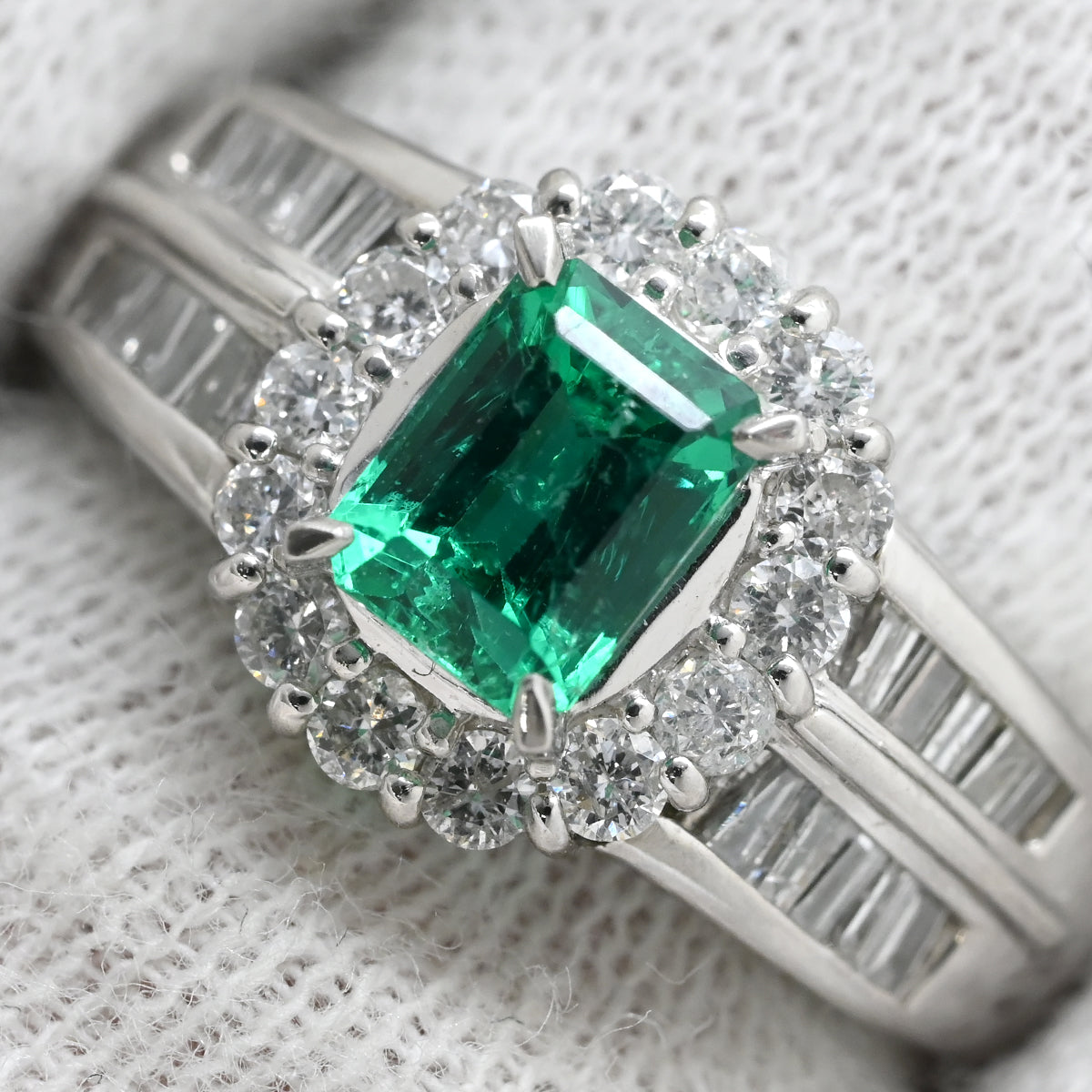 ノンブランド NON BRAND エメラルド ダイヤモンド リング プラチナシルバー リング 指輪 グリーン 緑 スクエア 13号