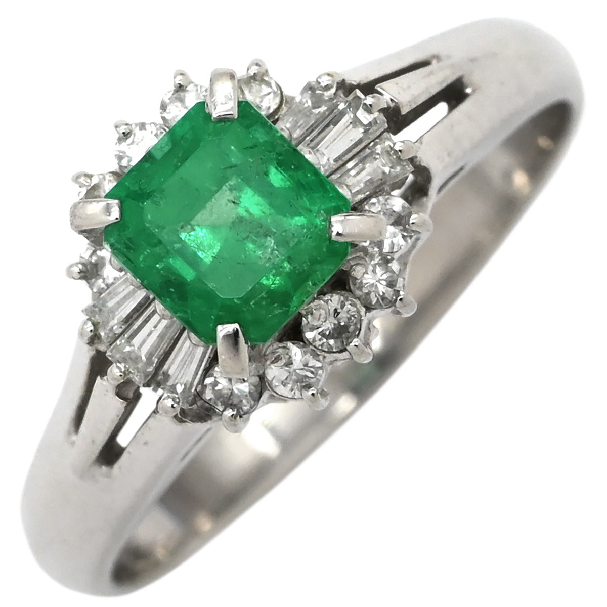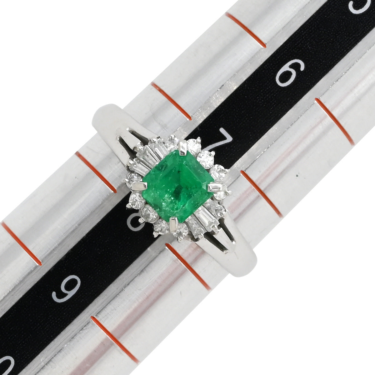 ノンブランド NON BRAND エメラルド ダイヤモンド リング プラチナシルバー Pt900 エメラルド ダイヤモンド リング 指輪 グリーン 緑 スクエア Pt 7.5号