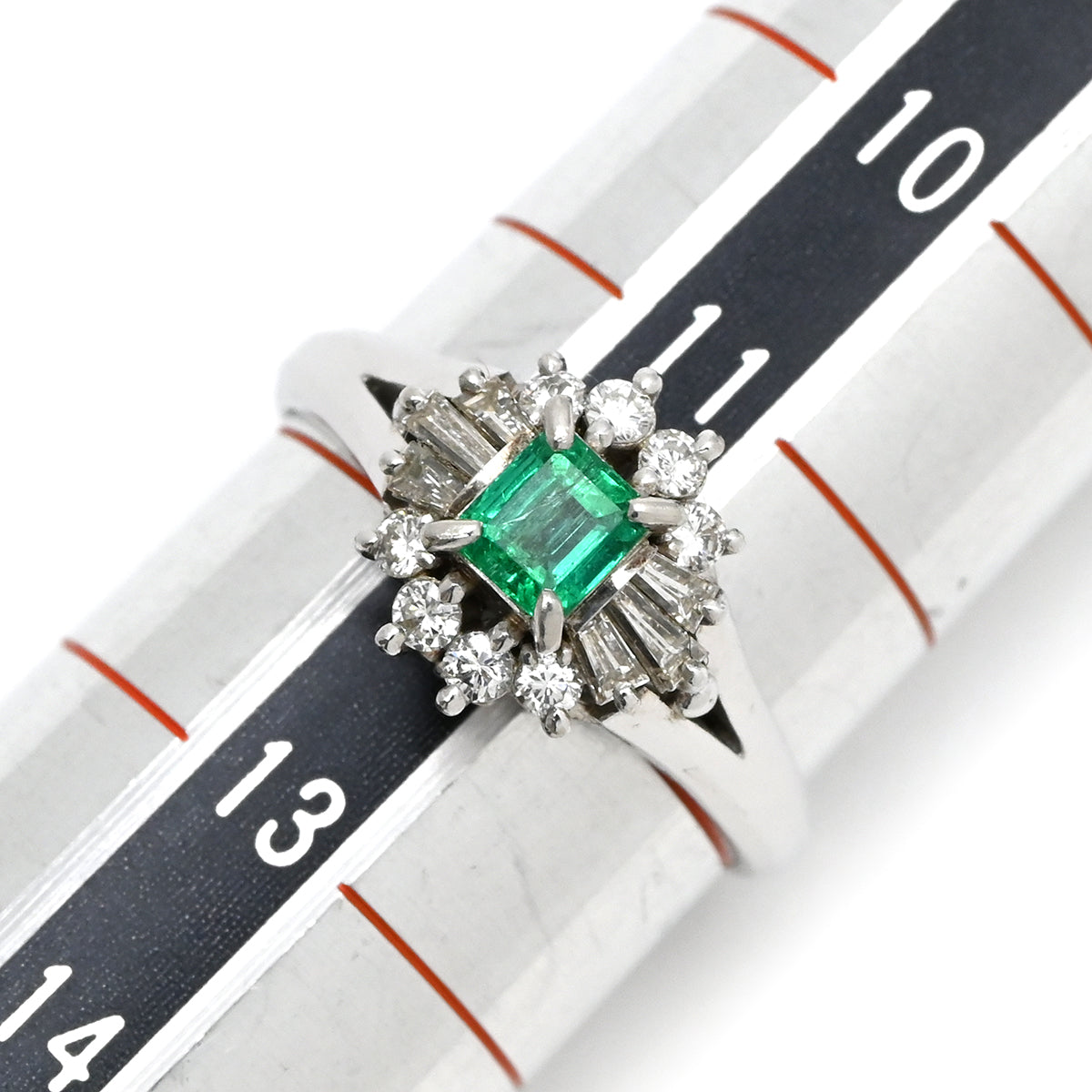 ノンブランド NON BRAND エメラルド ダイヤモンド リング プラチナシルバー リング 指輪 グリーン 緑 スクエア 12号