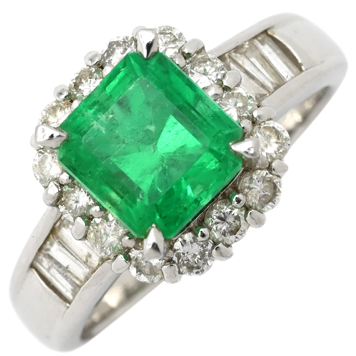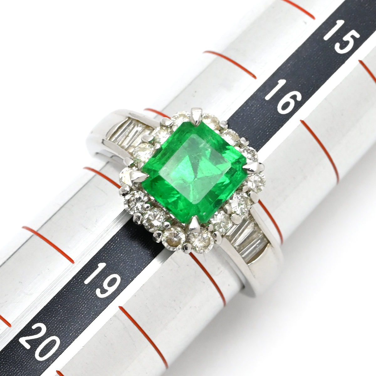 ノンブランド NON BRAND エメラルド ダイヤモンド リング プラチナシルバー リング 指輪 グリーン 緑 スクエア 17.5号