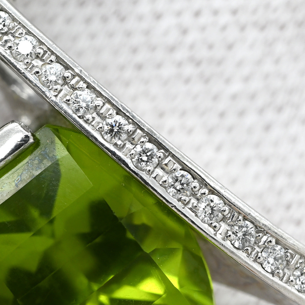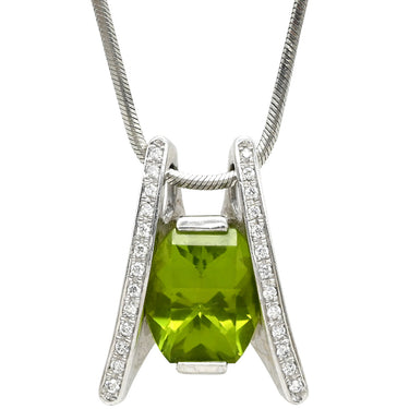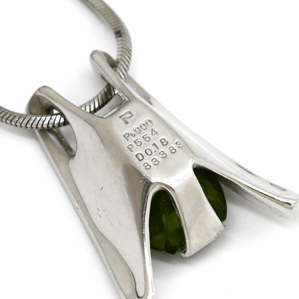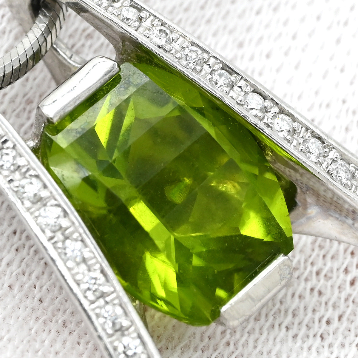 ノンブランド NON BRAND ダイヤ ペンダント プラチナシルバー ネックレス プラチナム ペリドット 緑 グリーン パヴェダイヤ A字型 大粒 スネークチェーン
