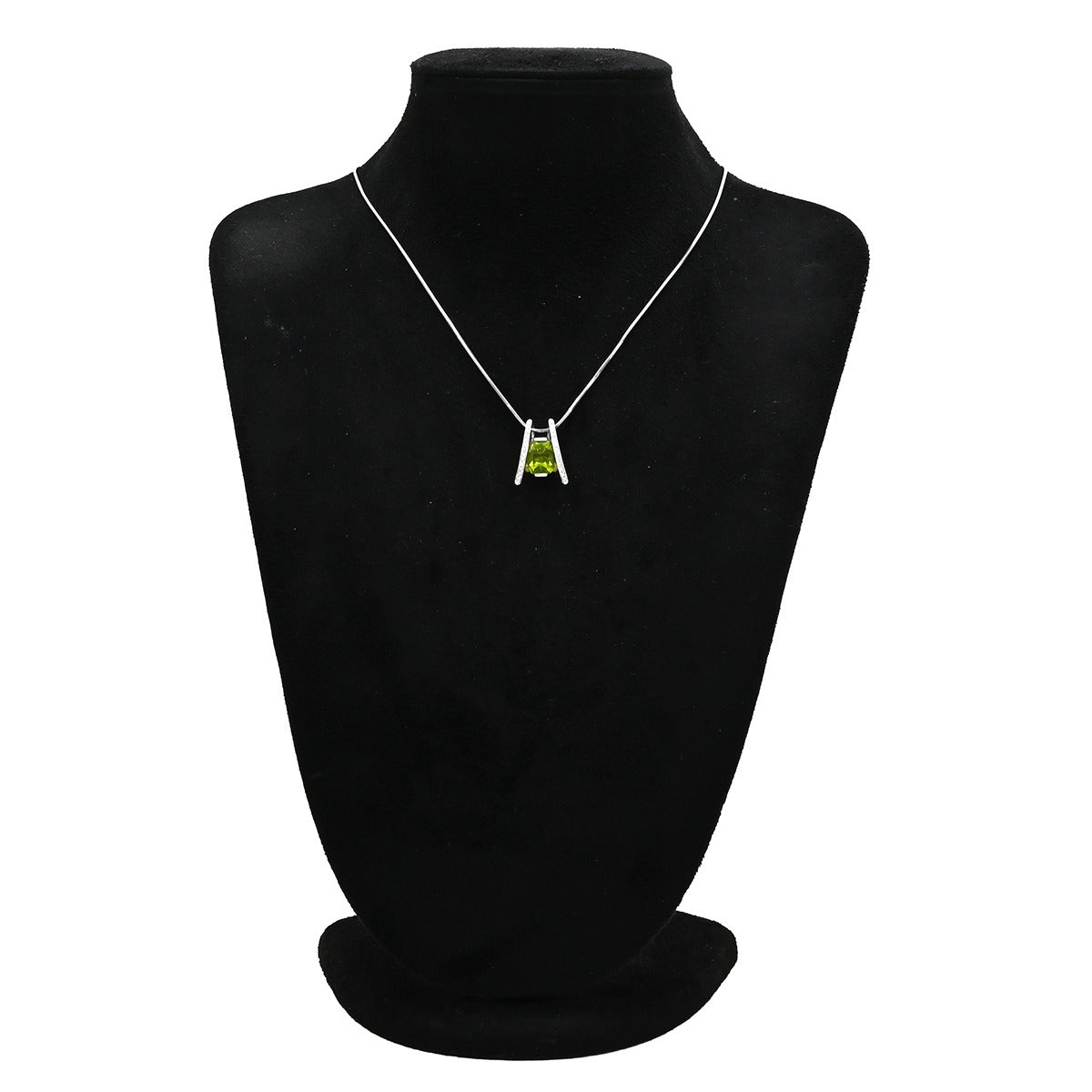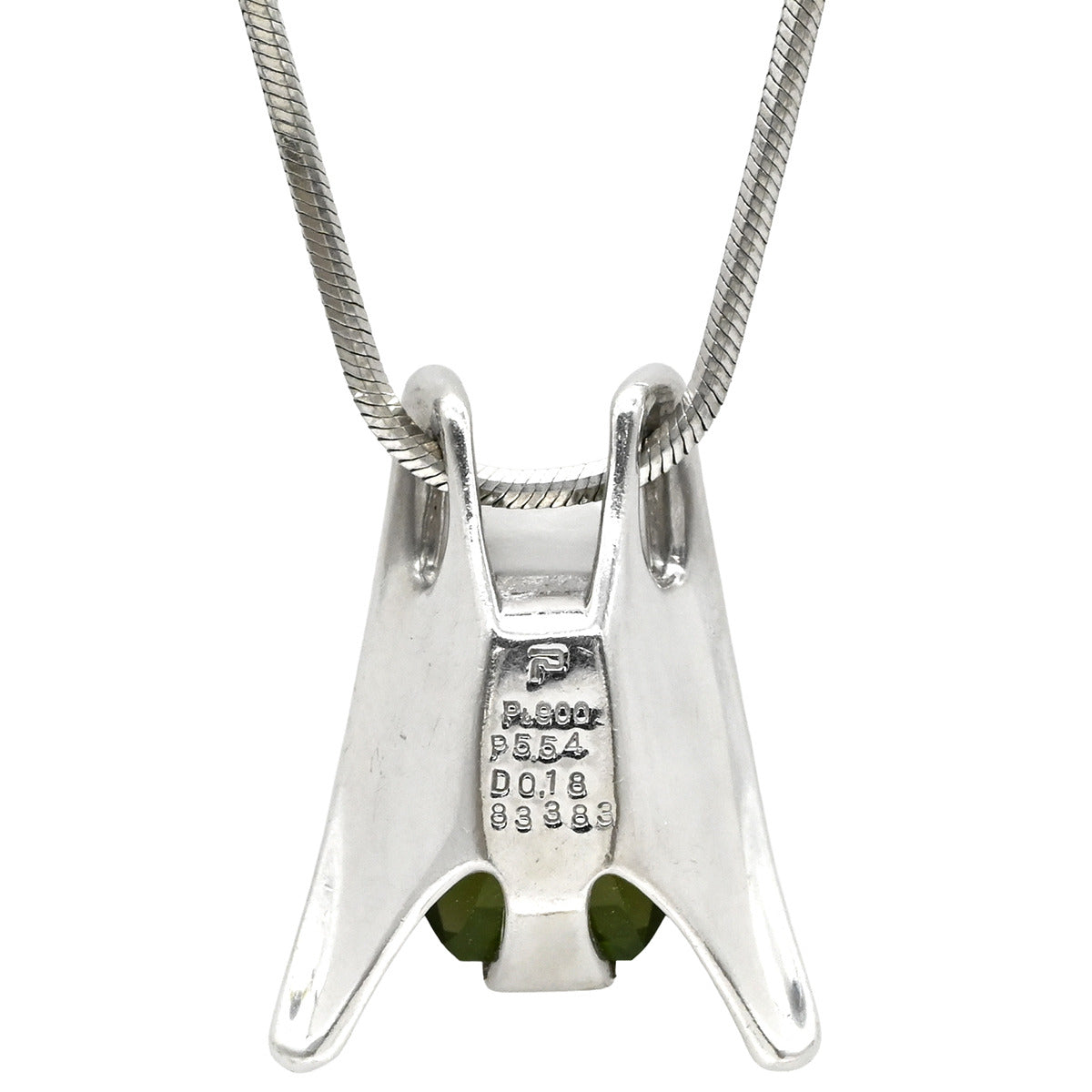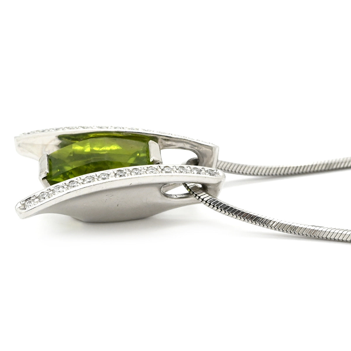 ノンブランド NON BRAND ダイヤ ペンダント プラチナシルバー ネックレス プラチナム ペリドット 緑 グリーン パヴェダイヤ A字型 大粒 スネークチェーン