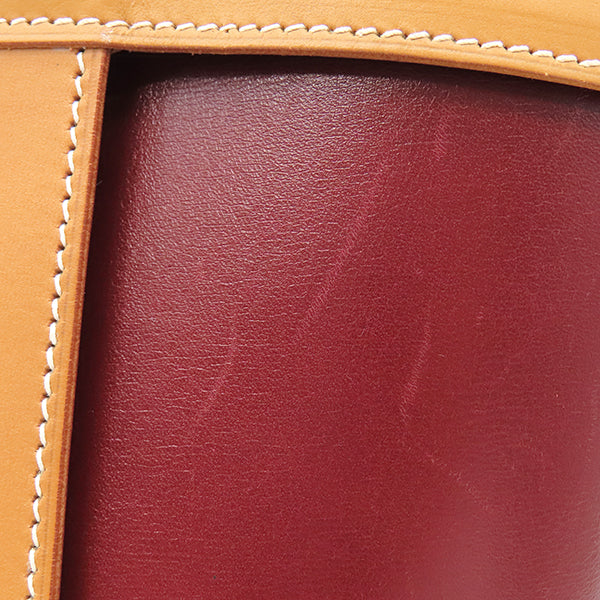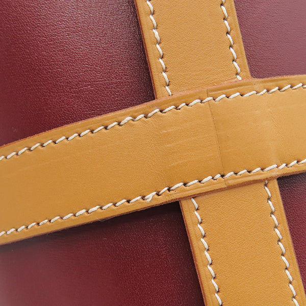 エルメス HERMES ミュズリエール2 ルージュヴィフ×ナチュラル×ハバナ ボックスカーフ ハンドバッグ ゴールド金具 赤 ベージュ 茶 バケツバッグ