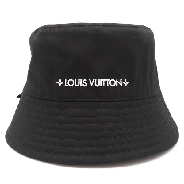 ルイヴィトン LOUIS VUITTON バケットハット LV マイン リバーシブル M7961M ノワール コットン ポリエステル ハット ゴールド金具 黒 白ロゴ