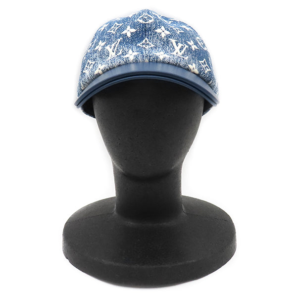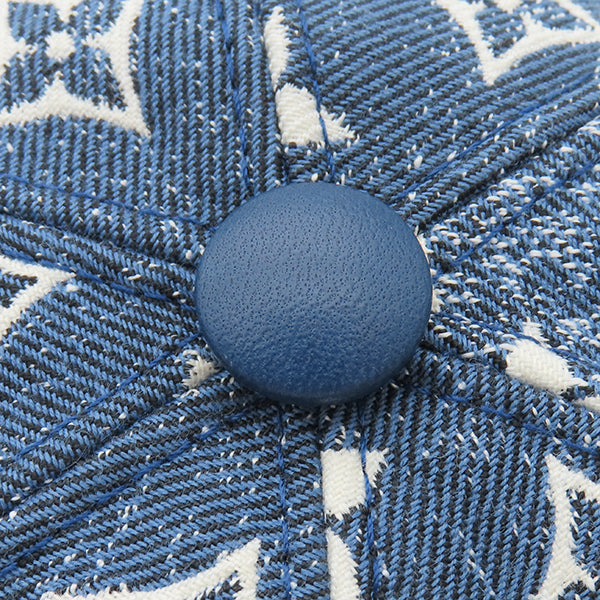 ルイヴィトン LOUIS VUITTON モノグラム ジャカード デニム M77437 ブルー ナイロン コットン レザー キャップ ゴールド金具