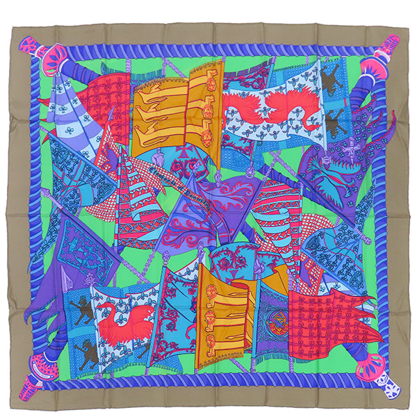 エルメス HERMES カレ90 CARRE パープル×グリーン×レッド シルク スカーフ 【Etendards et Bonnieres/旗】