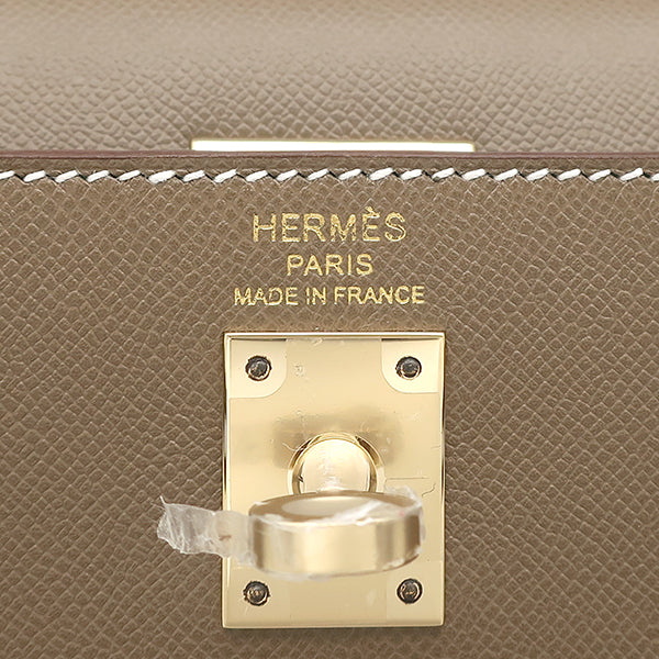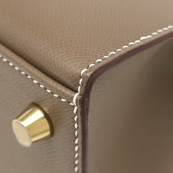 エルメス HERMES ケリー25 外縫い ヴェルソ エトゥープ×バンブー ヴォーマダム 2WAYバッグ シャンパンゴールド金具 新品 未使用 グレージュ 緑 バイカラー