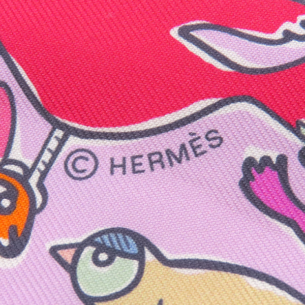 エルメス HERMES ツイリー パルム×ローズヴィフ×キャメル シルク スカーフ 【MILLE ET UN LAPINS/千と一のウサギ】