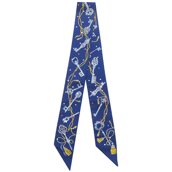 エルメス HERMES ツイリー マリン×グリスアルジョン シルク スカーフ 【LES CLES A POIS/レ クレ ア ポア】