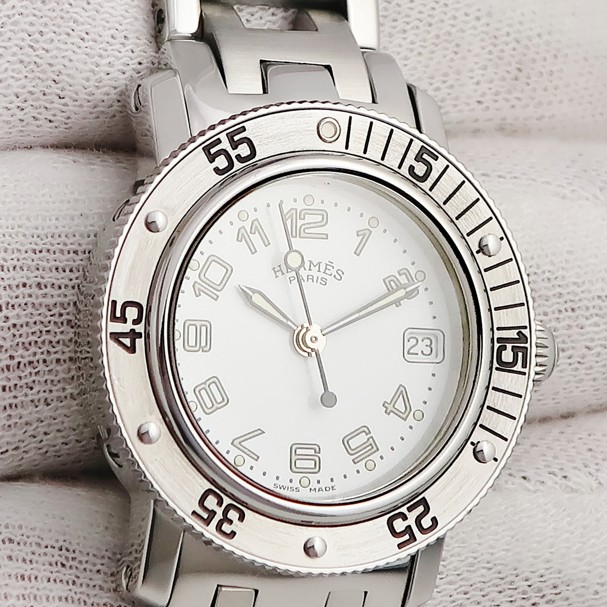 エルメス HERMES クリッパー ダイバー CL5.210 クオーツ レディース ホワイト Hマークブレス デイト 逆回転防止ベゼル