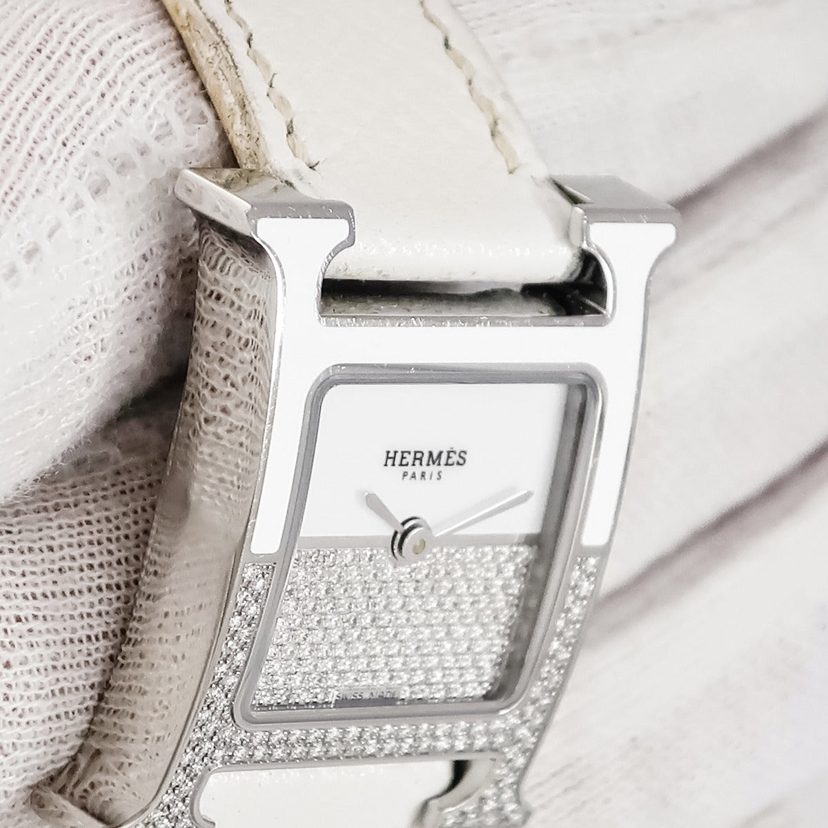 エルメス HERMES Hウォッチ・ドゥブルジュー HH1.234 クオーツ レディース 純正ダイヤ パヴェ 白×シルバー H型 スクエア