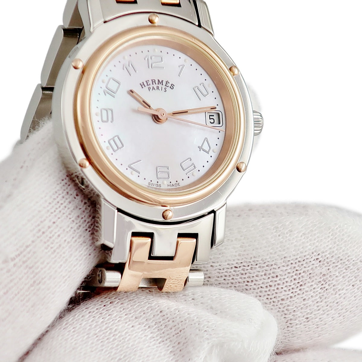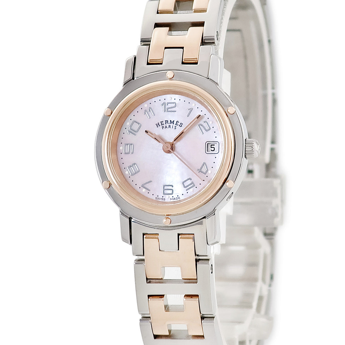 エルメス HERMES クリッパー ナクレ CL4.221 クオーツ レディース ピンクゴールドGP×SS コンビ シェル アラビア デイト
