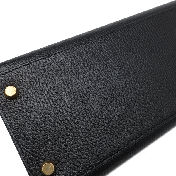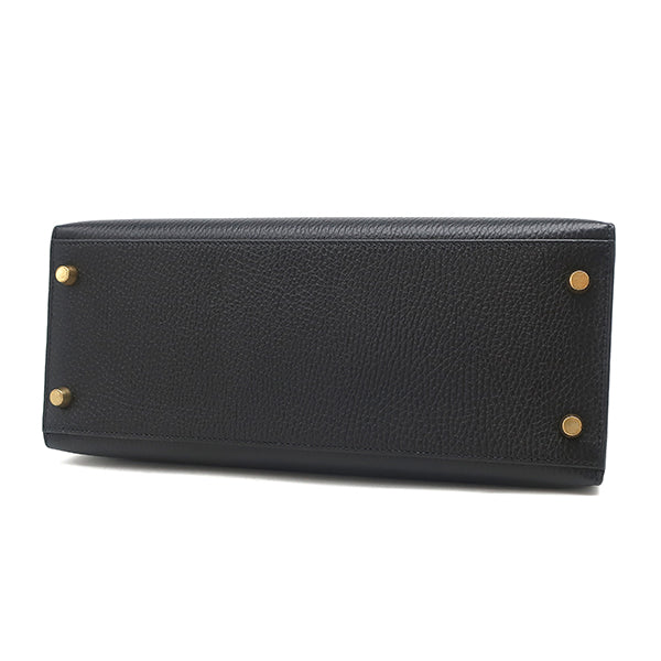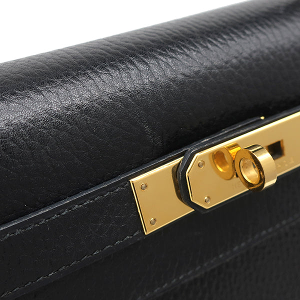 エルメス HERMES ケリー28 外縫い ブラック アルデンヌ 2WAYバッグ ゴールド金具 黒 ショルダー