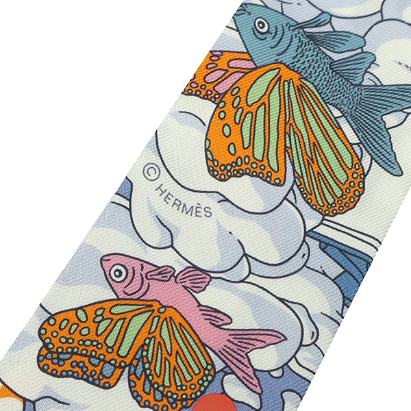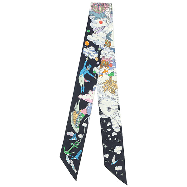 エルメス HERMES ツイリー ブルーノワール×モーヴ×マルチカラー シルク スカーフ 【SUR MON NUAGE/私の雲】