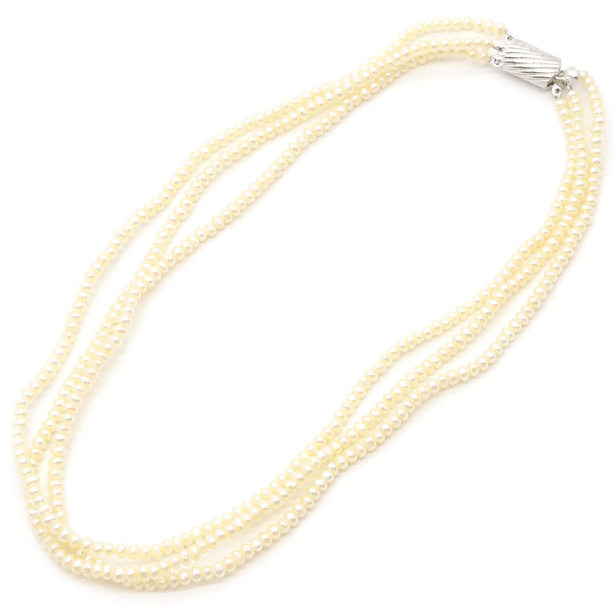 ノンブランド NON BRAND 3連 パール シルバー ネックレス 小粒