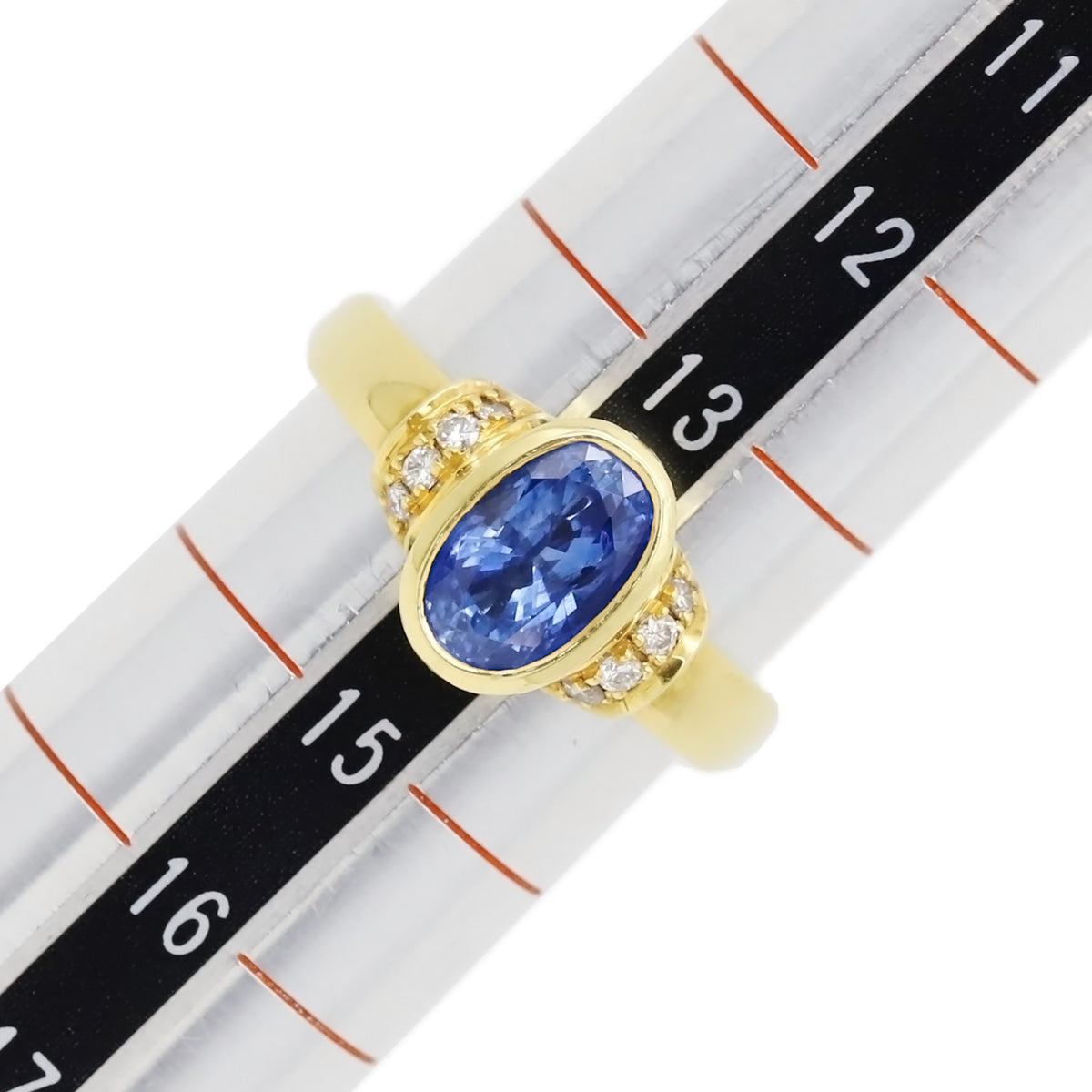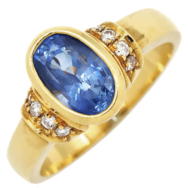 ノンブランド NON BRAND ブルーサファイア ダイヤリング イエローゴールド×ブルー リング 指輪 Au750 18K 青 オーバル 14号