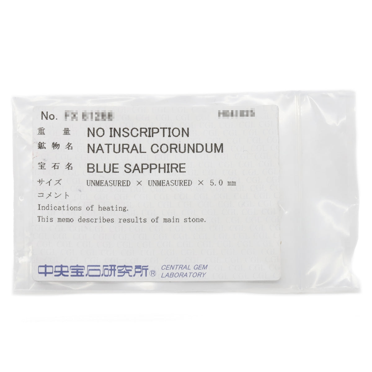 | NS | 未使用保管品。 |