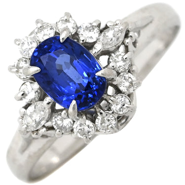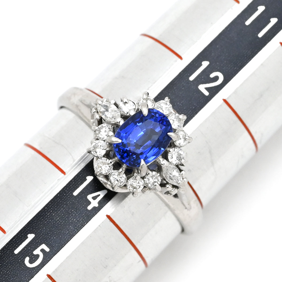 ノンブランド NON BRAND ブルーサファイア ダイヤ リング ブルー×プラチナシルバー Pt900 サファイア ダイヤモンド リング 指輪 青 プラチナム 13号