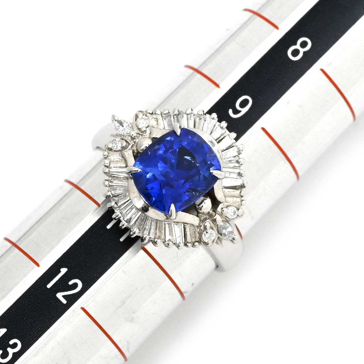 ノンブランド NON BRAND ブルーサファイア ダイヤリング プラチナシルバー リング 指輪 ロイヤルブルー 青 10.5号