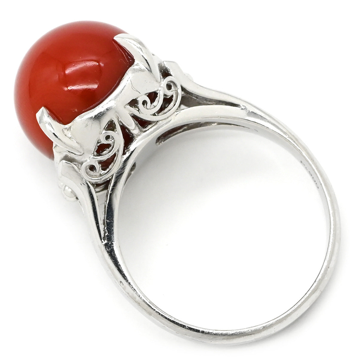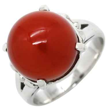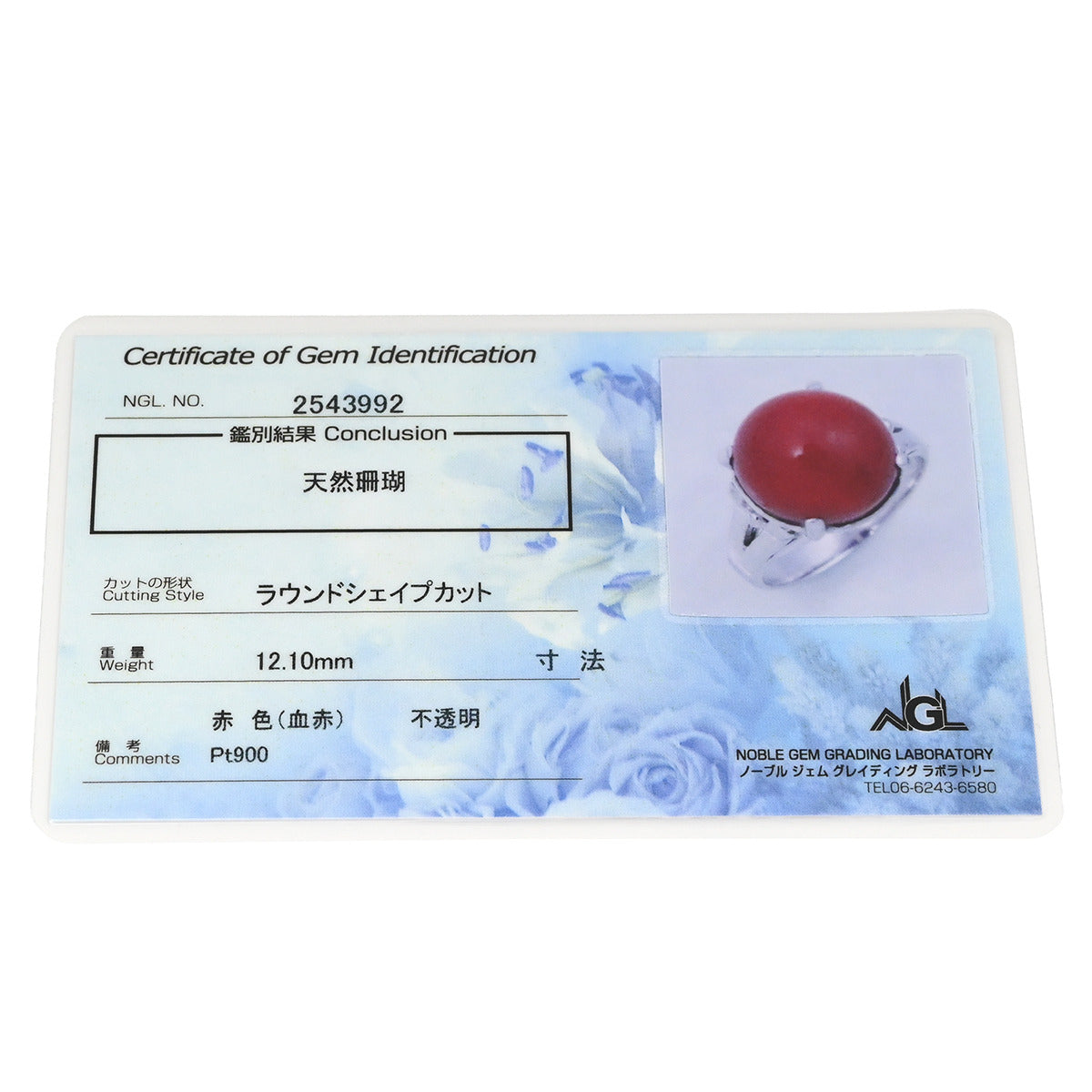 ノンブランド NON BRAND 珊瑚リング プラチナシルバー Pt900 珊瑚 リング 指輪 赤 サンゴ レッド ラウンドシェイプ 12号