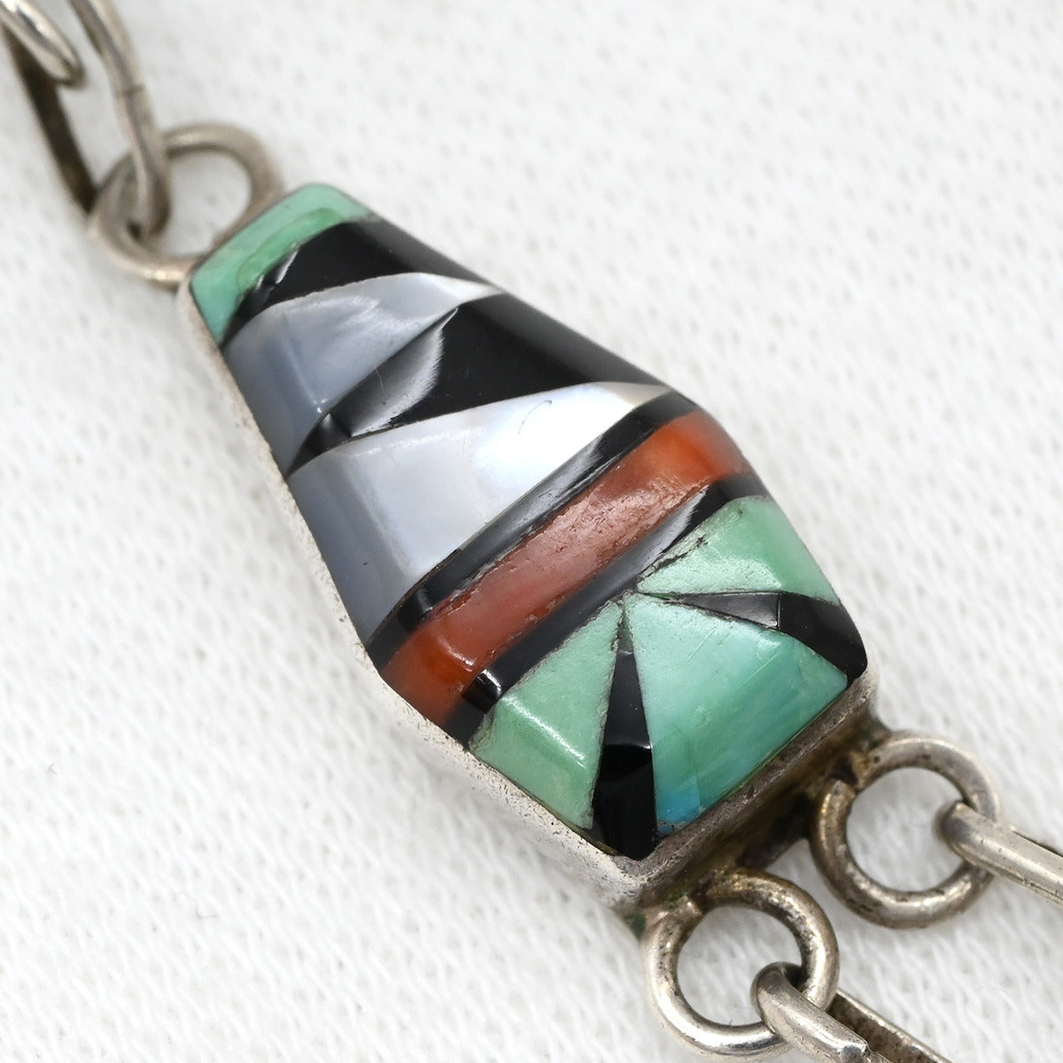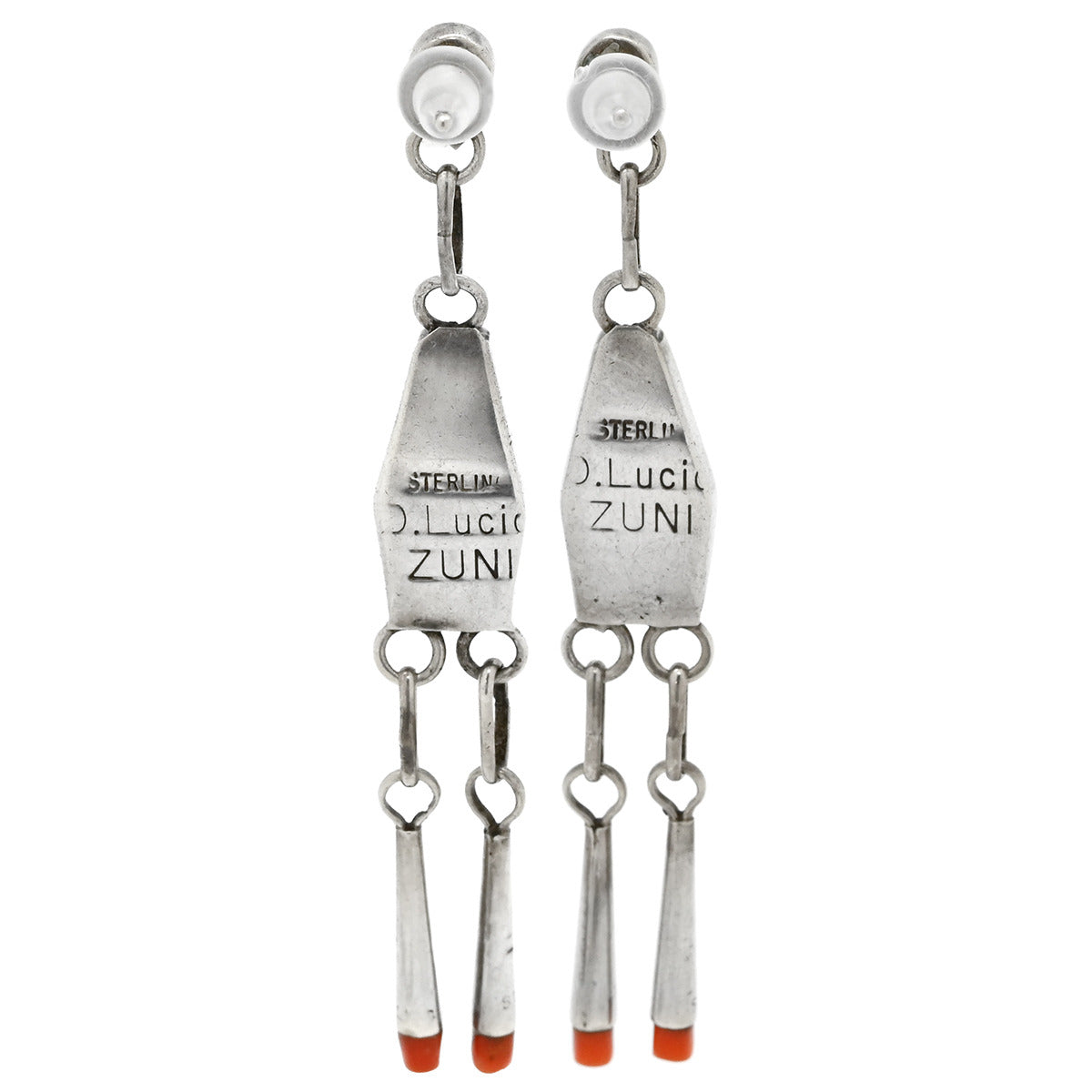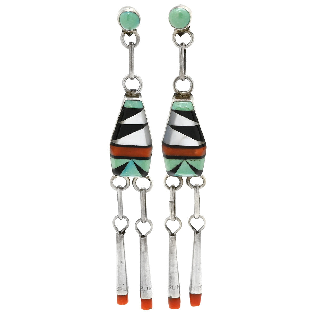 D.Lucio D.Lucio インディアンジュエリー マルチカラー ピアス Ag925 SV925 サンゴ シェル 色石 赤 青 黒 白 ズニ族 ドロップ スイング