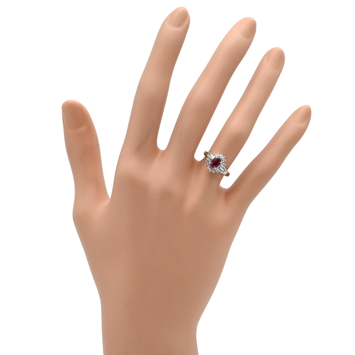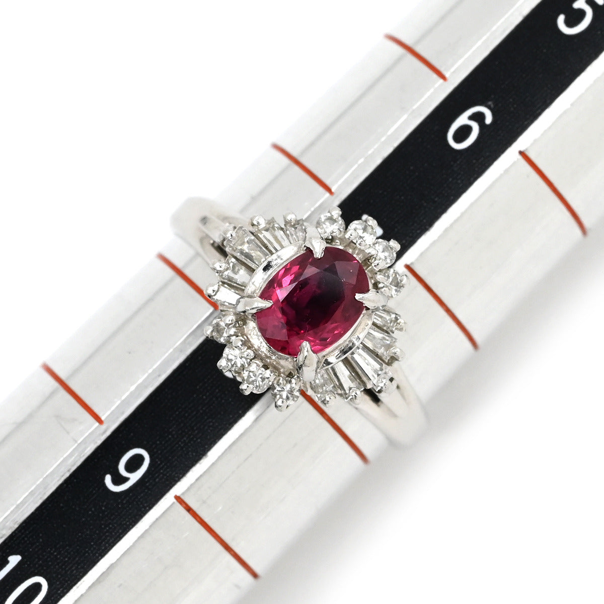 ノンブランド NON BRAND ルビー 0.66ct ダイヤモンド プラチナシルバー リング 指輪 レッド 赤 1石 プラチナ オーバルミックスカット 7.5号