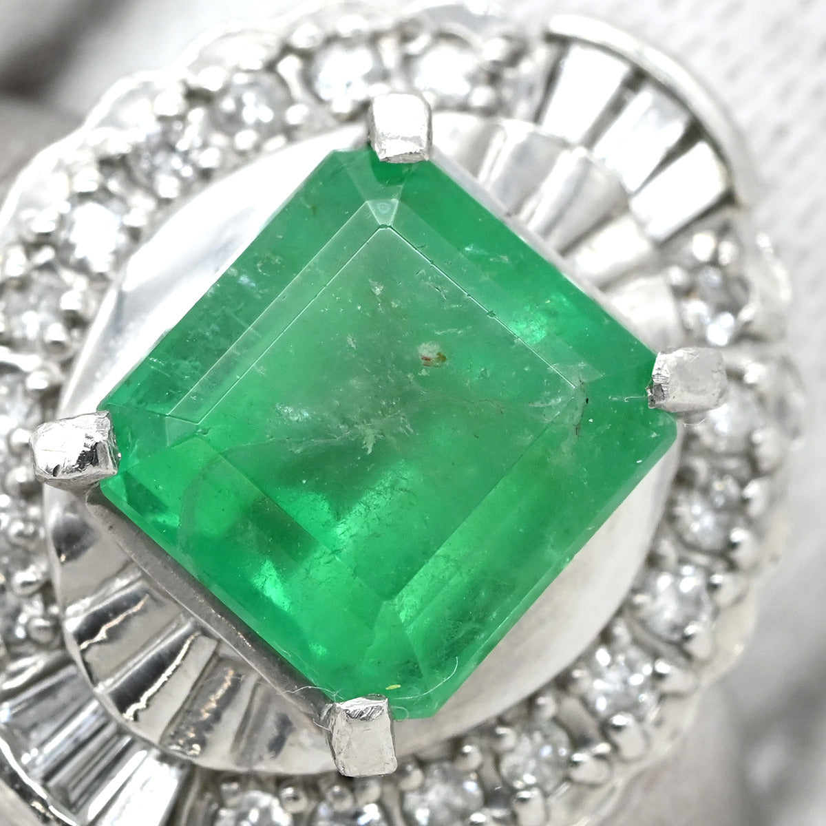 ノンブランド NON BRAND エメラルド ダイヤモンド リング プラチナシルバー リング 指輪 グリーン 緑 スクエア 2.0ct エメラルドカット 12.5号
