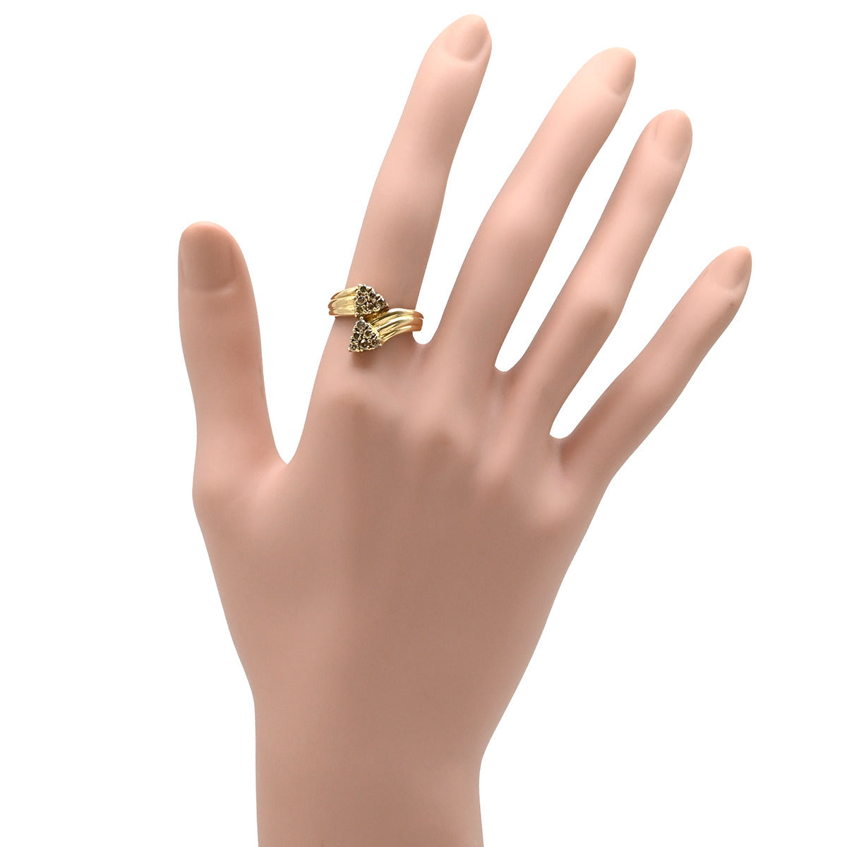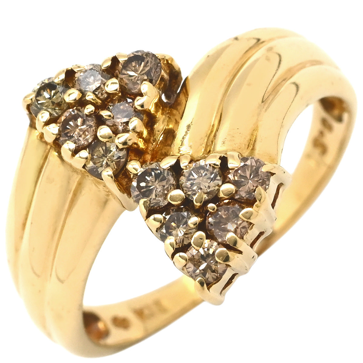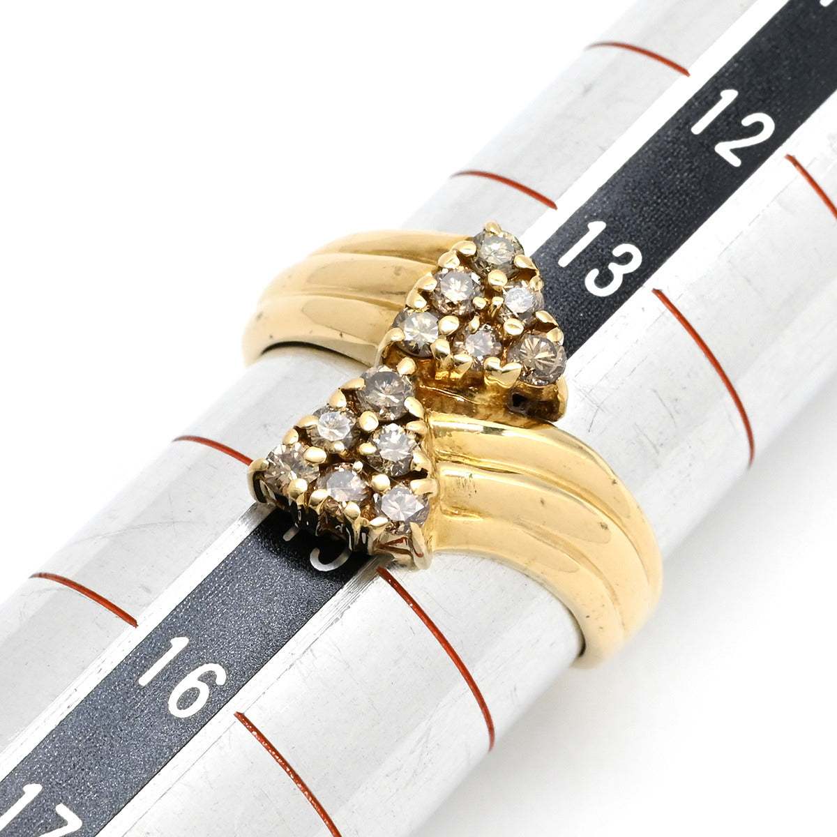 ノンブランド NON BRAND ダイヤ リング イエローゴールド リング 指輪 Au750 18K 18金 YG ブラウンダイヤ 0.51t 2連 トライアングル 14号
