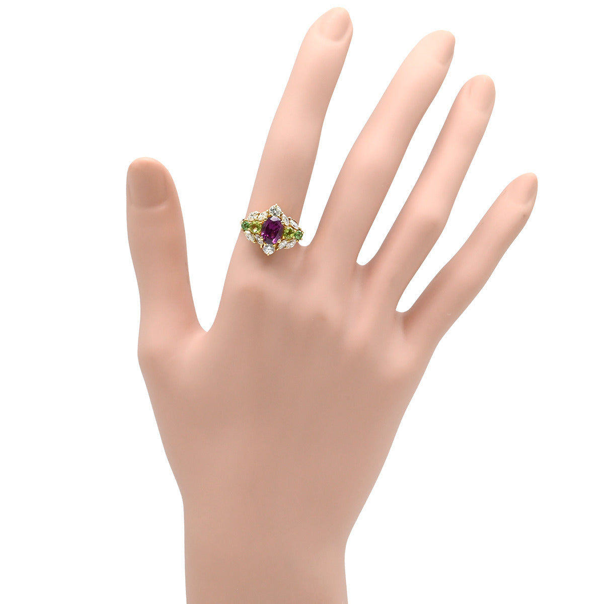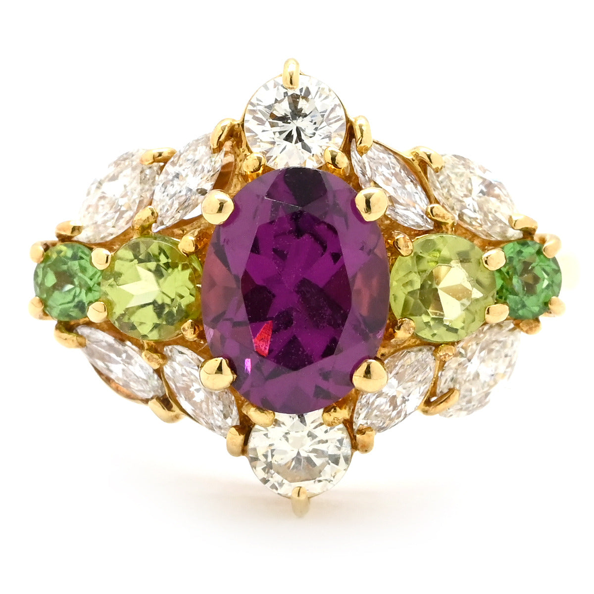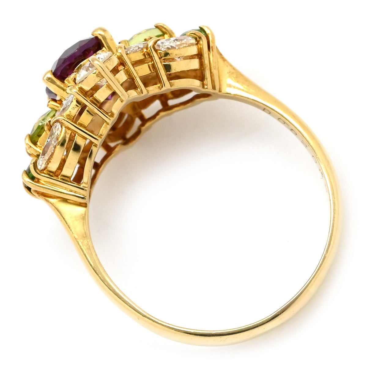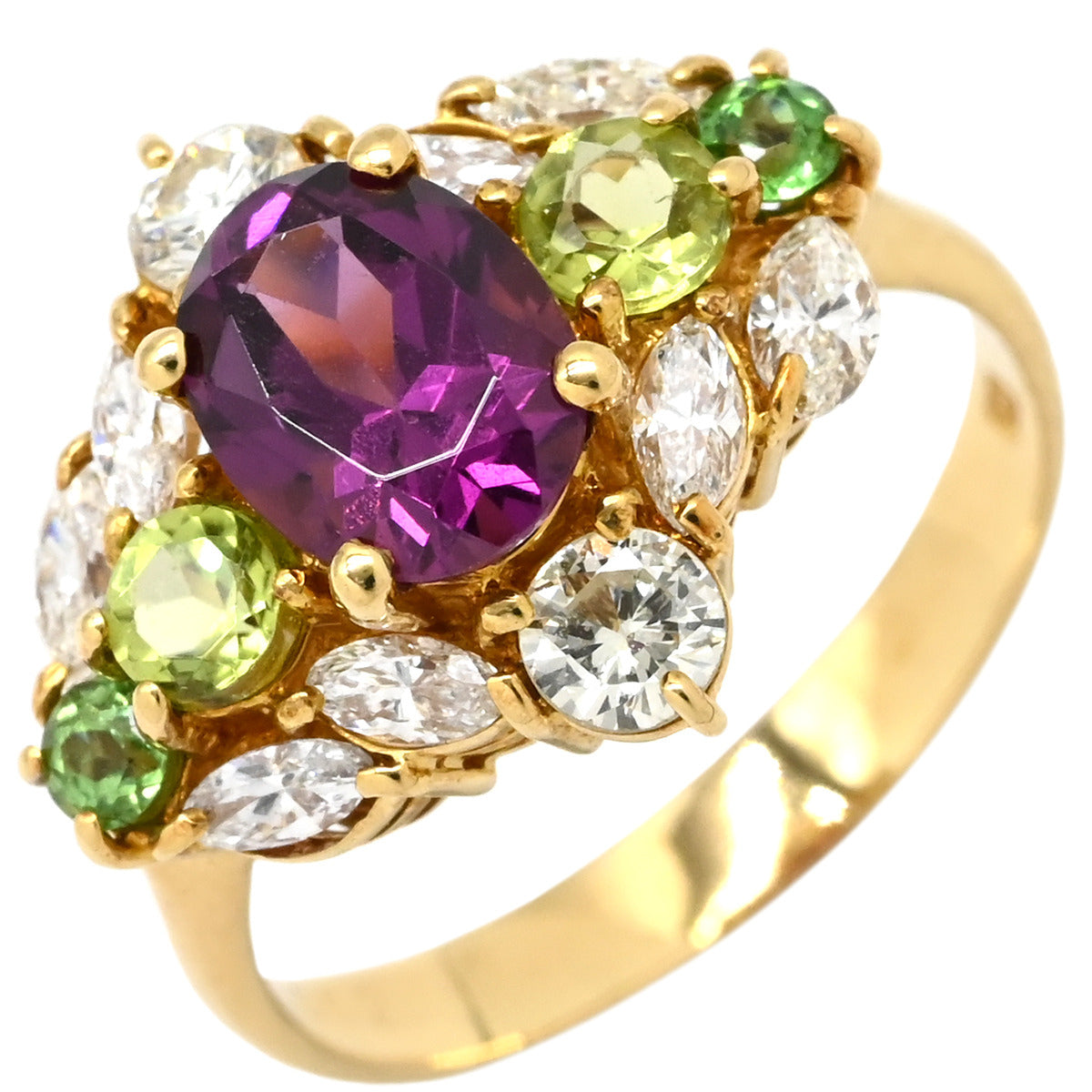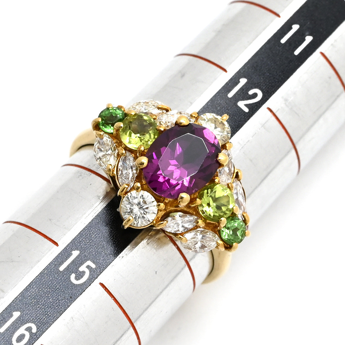 ノンブランド NON BRAND マルチカラージェムストーンリング イエローゴールド リング 指輪 Au750 K18 YG ダイヤ オーバルミックスカット 13.5号