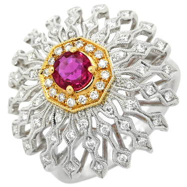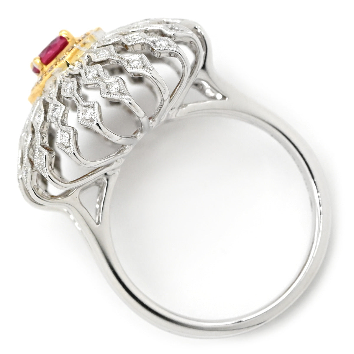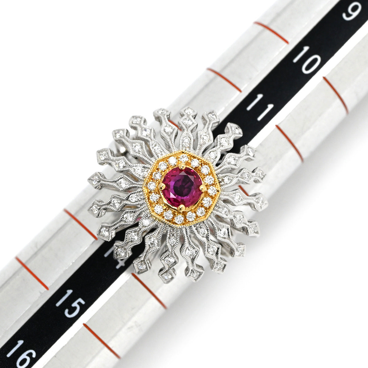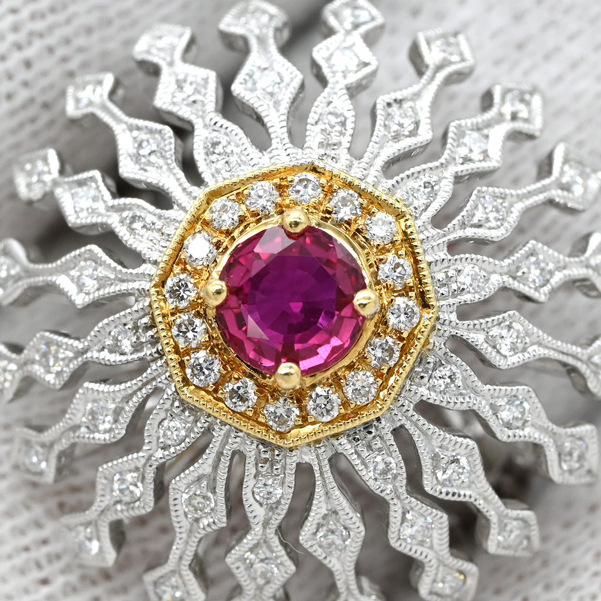 カール・ブラックバーン CARL BLACKBURN ダイヤ ルビー ホワイトゴールド×レッド リング 指輪 ホワイトゴールド Au750 18K ドーム型 フラワーモチーフ 透かし彫り 13号