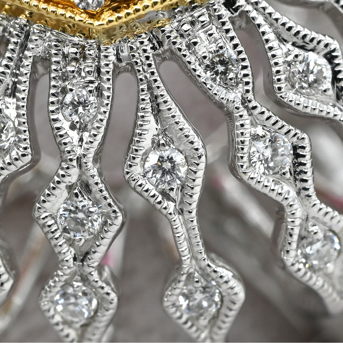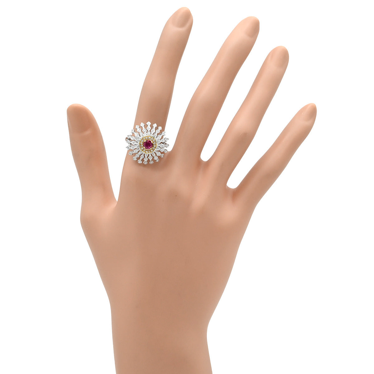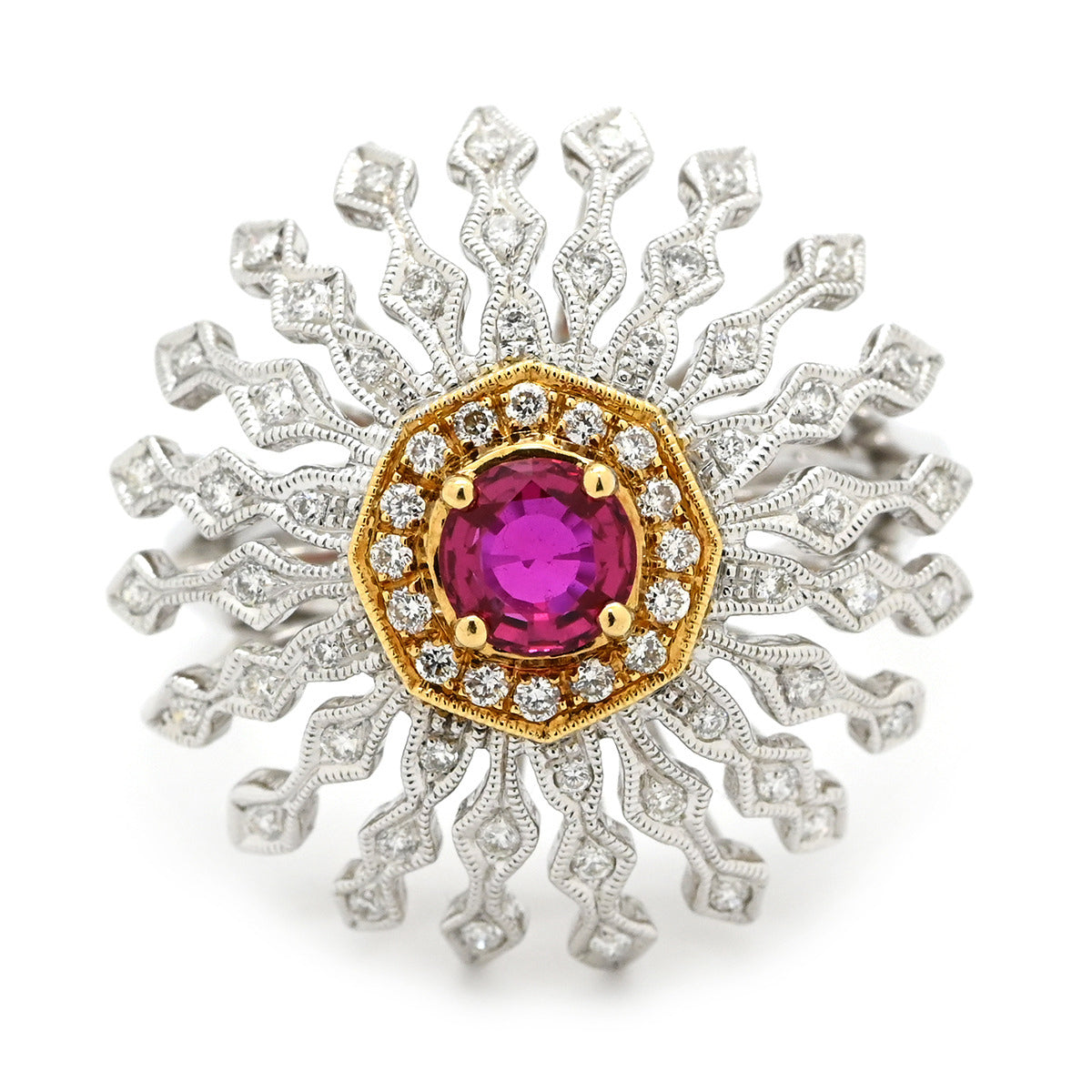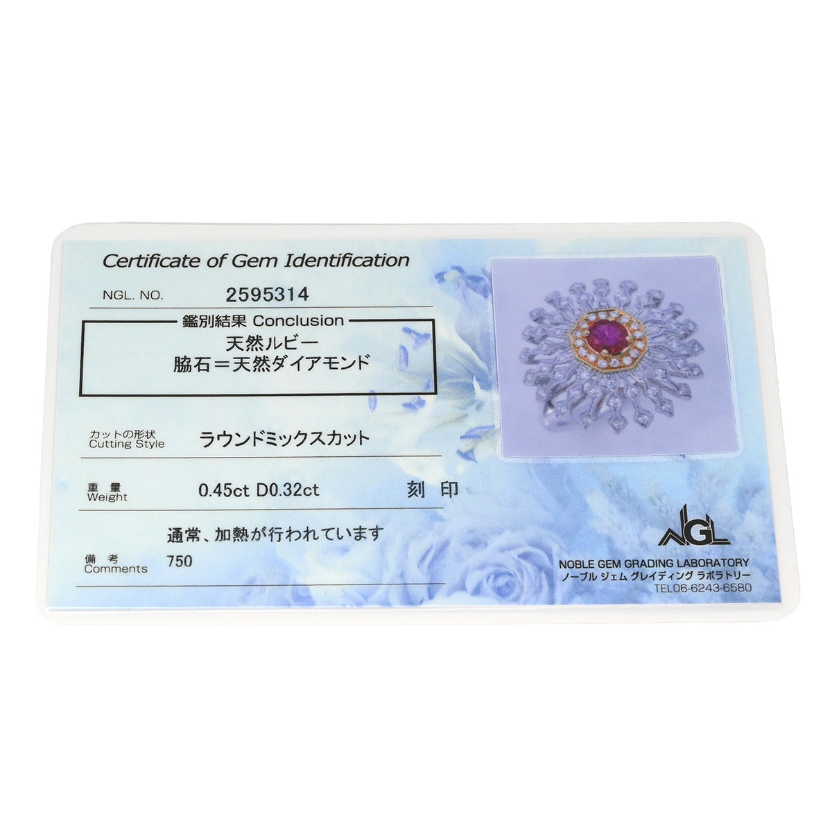 カール・ブラックバーン CARL BLACKBURN ダイヤ ルビー ホワイトゴールド×レッド リング 指輪 ホワイトゴールド Au750 18K ドーム型 フラワーモチーフ 透かし彫り 13号