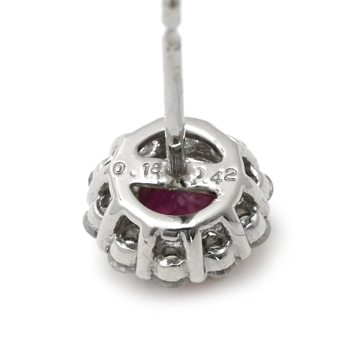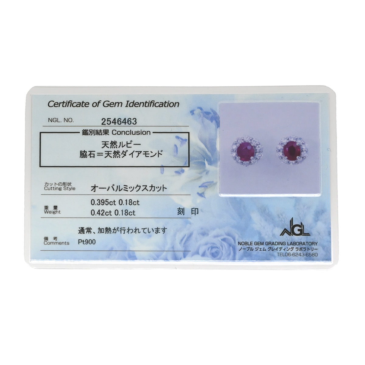 ノンブランド NON BRAND ルビー ダイヤピアス プラチナシルバー×レッド ピアス 赤 plat900 オーバルミックスカット