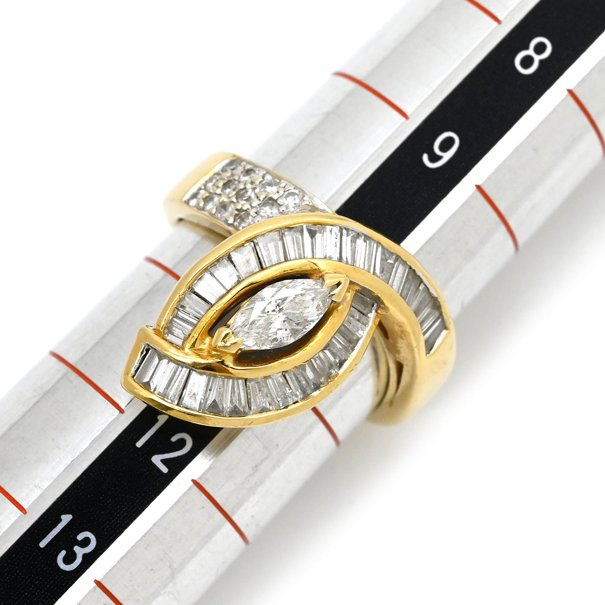 ノンブランド NON BRAND ダイヤモンド 0.88ct 032ct イエローゴールド リング 指輪 K18 Au750 YG デザインリング マーキスカット テーパー 10号