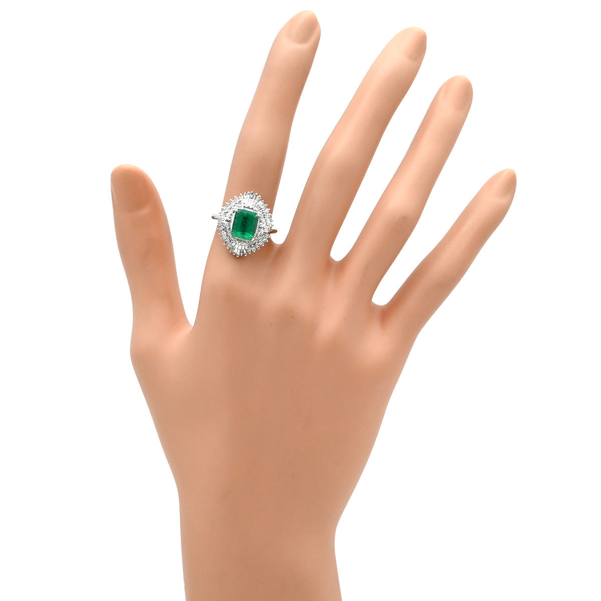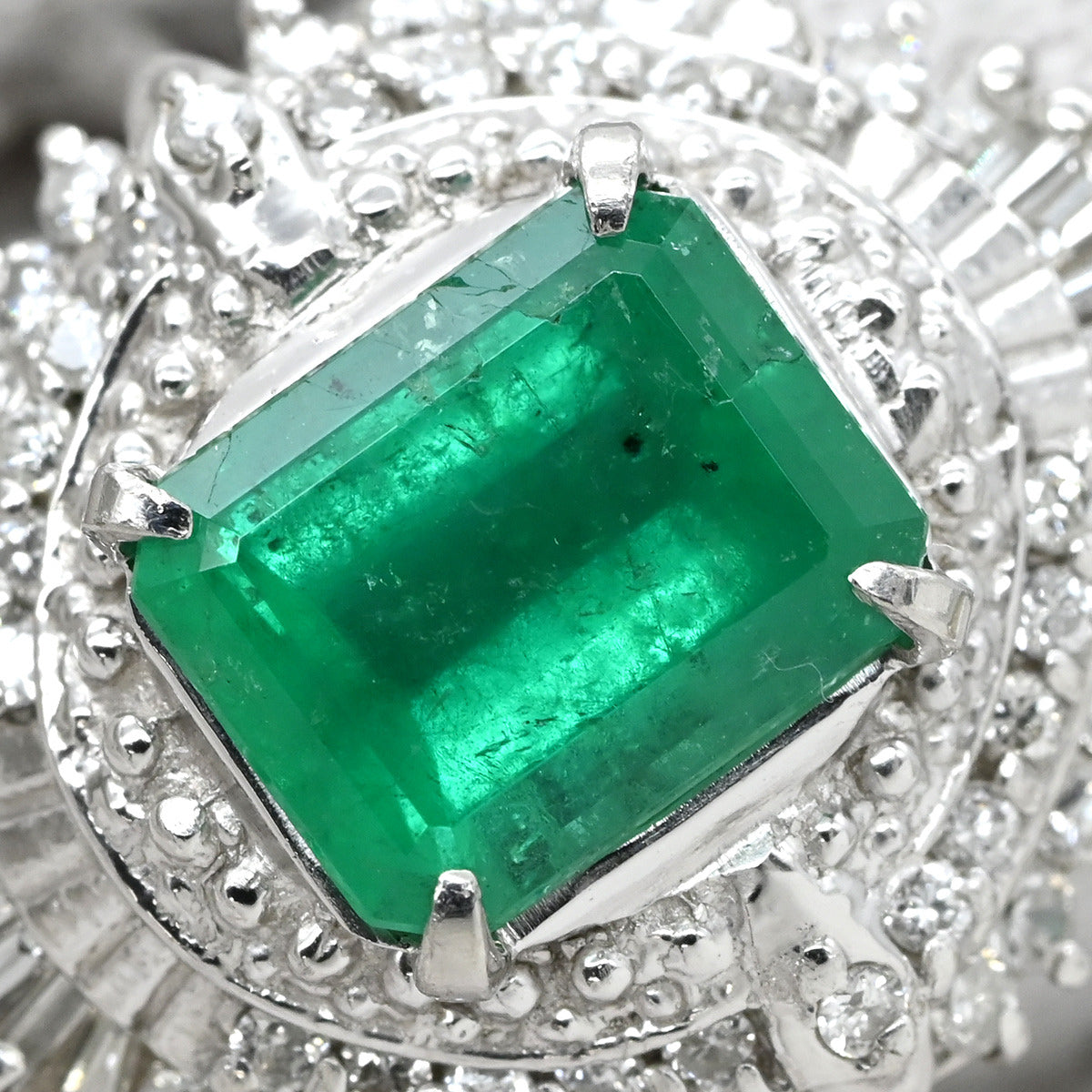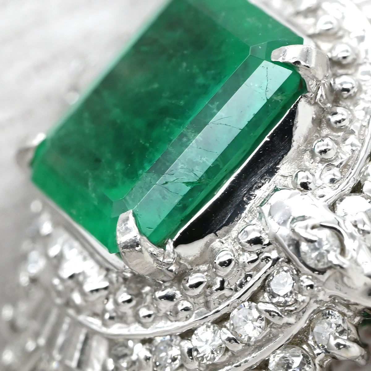 ノンブランド NON BRAND エメラルド ダイヤモンド リング プラチナシルバー リング 指輪 グリーン 緑 スクエア 1.80ct プラチナム 12号