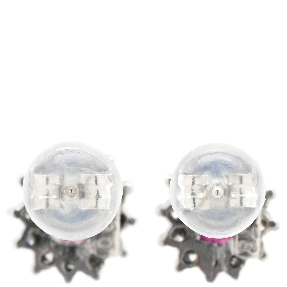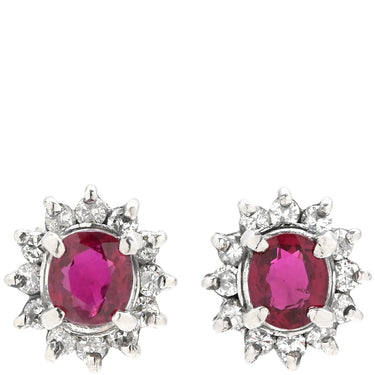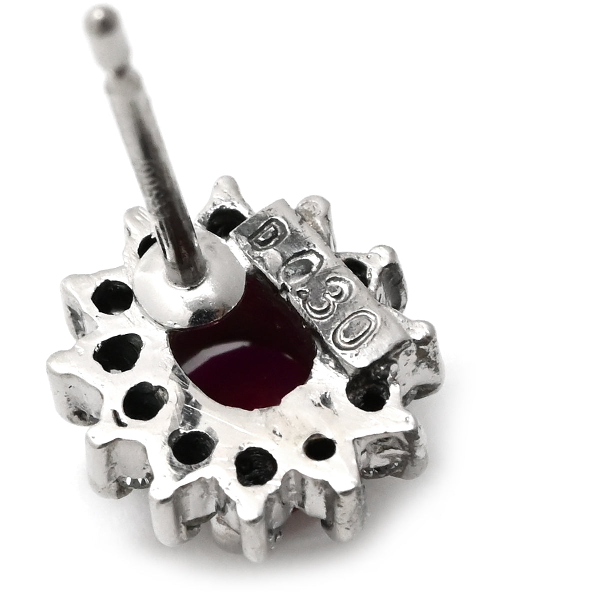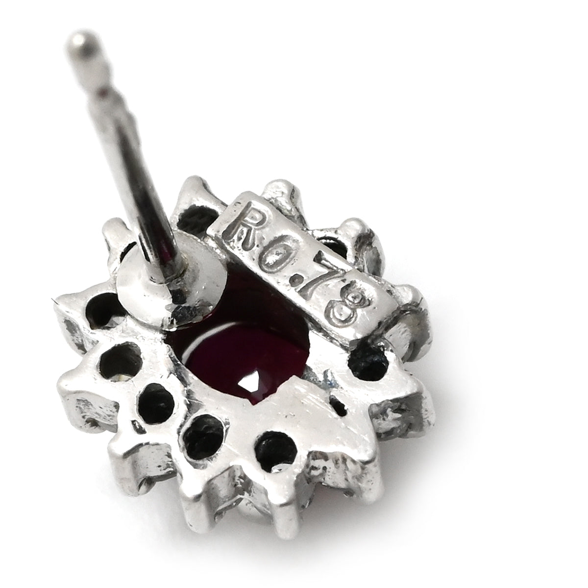 ノンブランド NON BRAND ルビー ダイヤ プラチナシルバー×レッド ピアス 赤 Pt900 オーバル フラワーモチーフ 花 0.30ct 両耳