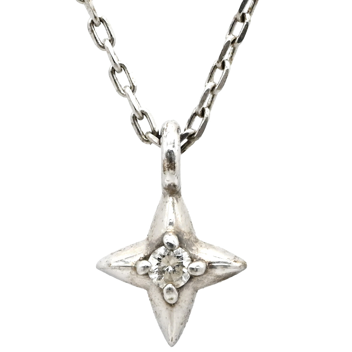 ノンブランド NON BRAND ダイヤ ペンダント ホワイトゴールド K10WG ダイヤモンド ネックレス ホワイトゴールド 1P 1石 1粒 十字星 スターモチーフ ソリテール アズキチェーン