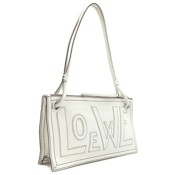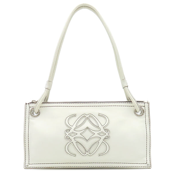 ロエベ LOEWE アナグラム ロゴ ホワイト レザー ショルダーバッグ シルバー金具 白