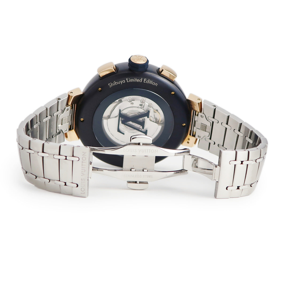 ルイヴィトン LOUIS VUITTON タンブール クロノグラフ ダミエ コバルト Vレインボー QA129 自動巻き メンズ K18PG×SS 渋谷限定