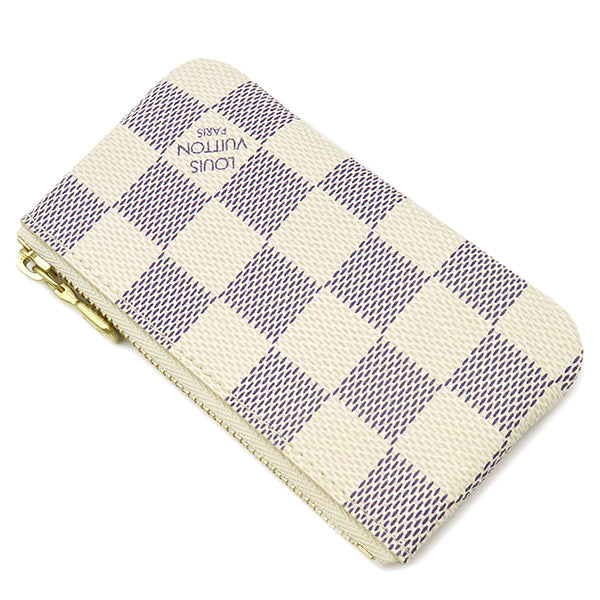 ルイヴィトン LOUIS VUITTON ポシェット クレ N62658 ダミエアズール ダミエアズールキャンバス コインケース ゴールド金具 小銭入れ 白 キーチェーン付き